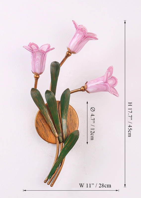 Handcrafted with exquisite detail, the Blooming Tulip Wall Sconce captures the elegance of flowers in full bloom. Its delicately blown glass shades, shaped like tulip petals, diffuse a warm and gentle glow that brings a touch of romance and sophistication to any space.