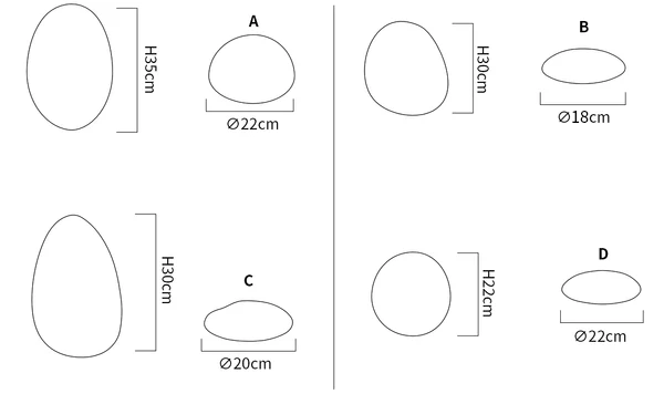 Model D: ∅ 8.6″ x H 8.6″ / Dia 22cm x H 22cm