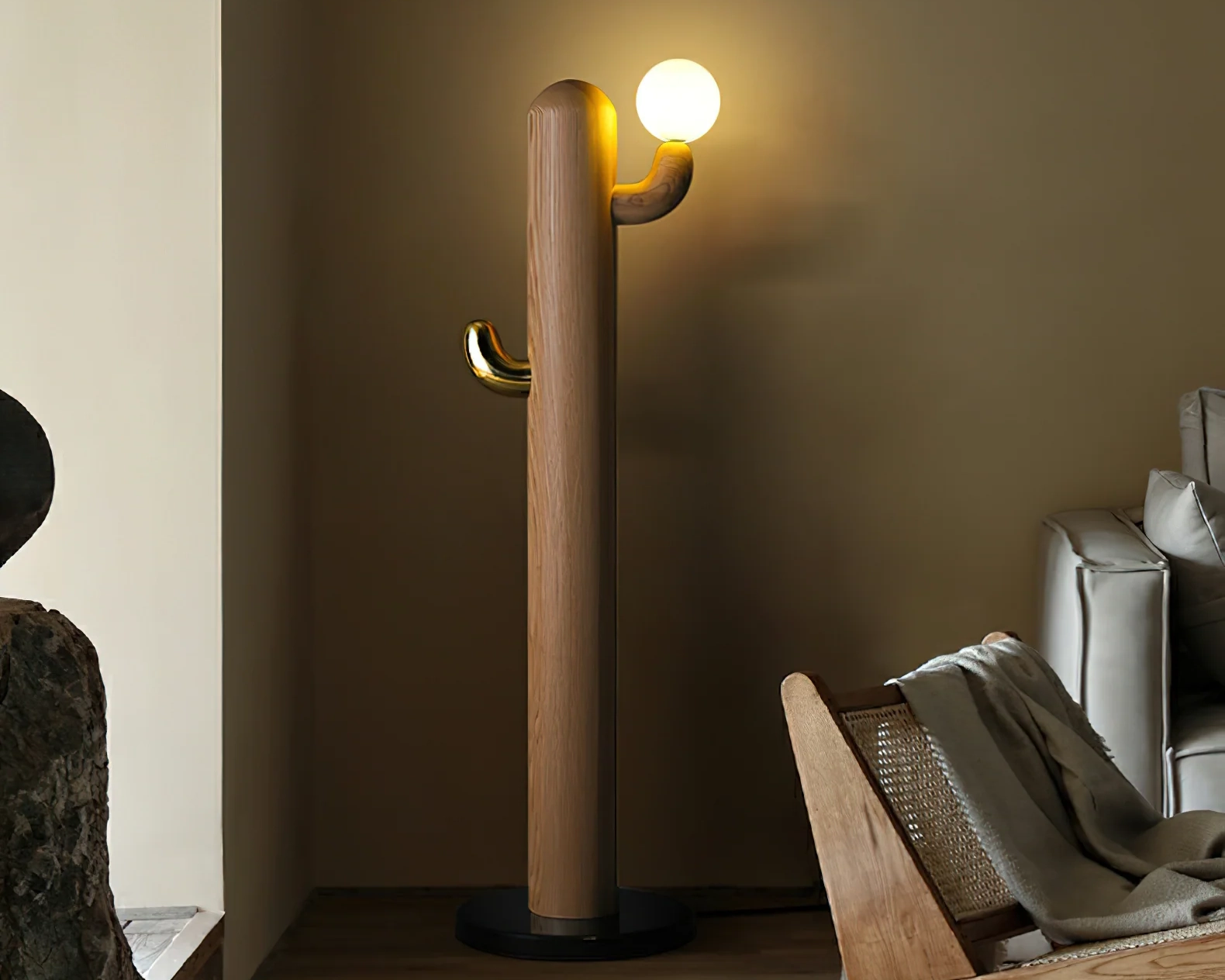 The Cactus Floor Lamp takes its inspiration from the natural silhouette of a cactus, merging organic beauty with contemporary design. Its wooden frame echoes the plant’s distinctive form, with graceful branches that support softly glowing orbs. Playful yet refined, this lamp adds both character and elegance to any interior setting.