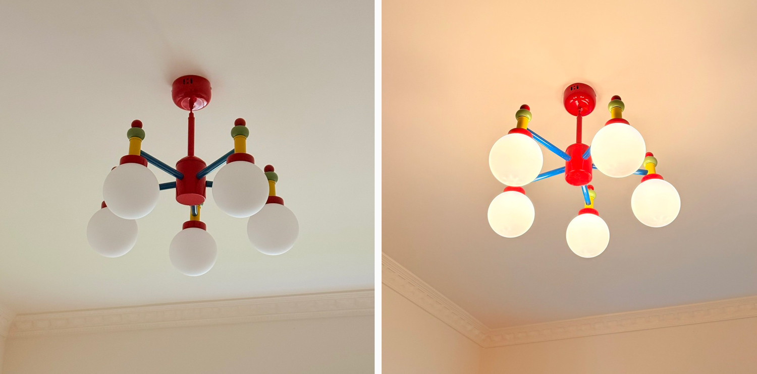 Playful yet composed, it brings a warm, cheerful presence to dining areas, living rooms, or creative spaces.
