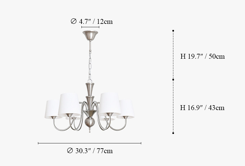 6-Lights: ∅ 30.3″ x H 16.9″ / Dia 77cm x H 43cm