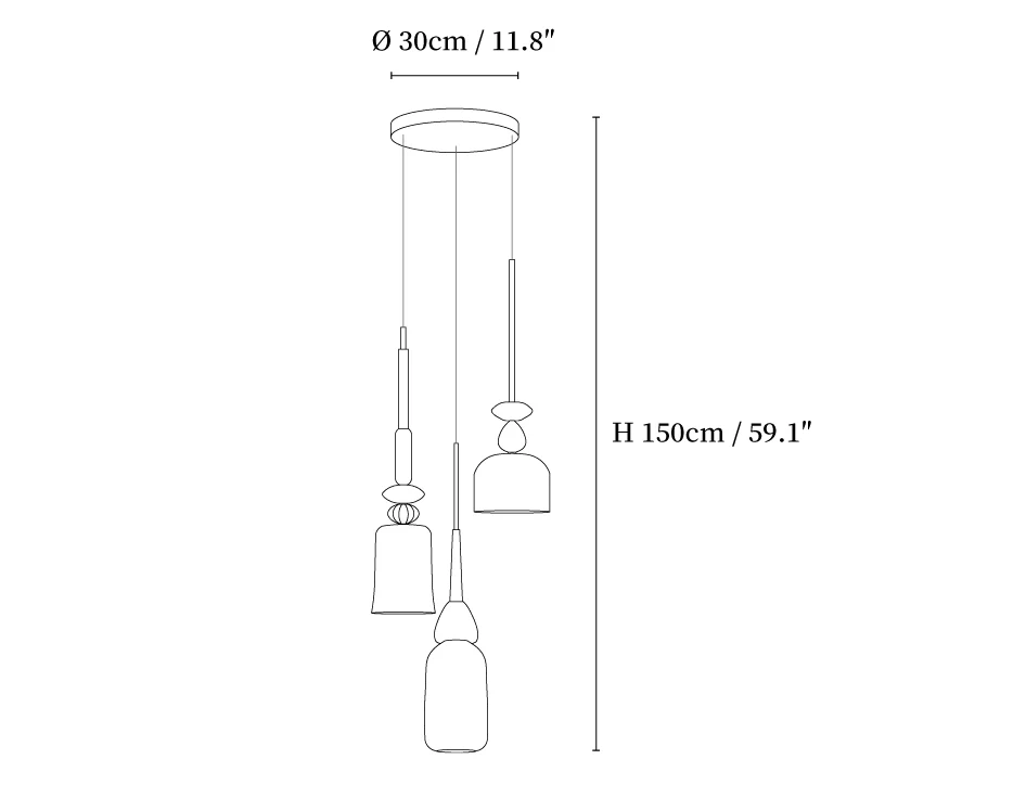 59″ Adjustable hanging height cable, which can be lengthened as required.
