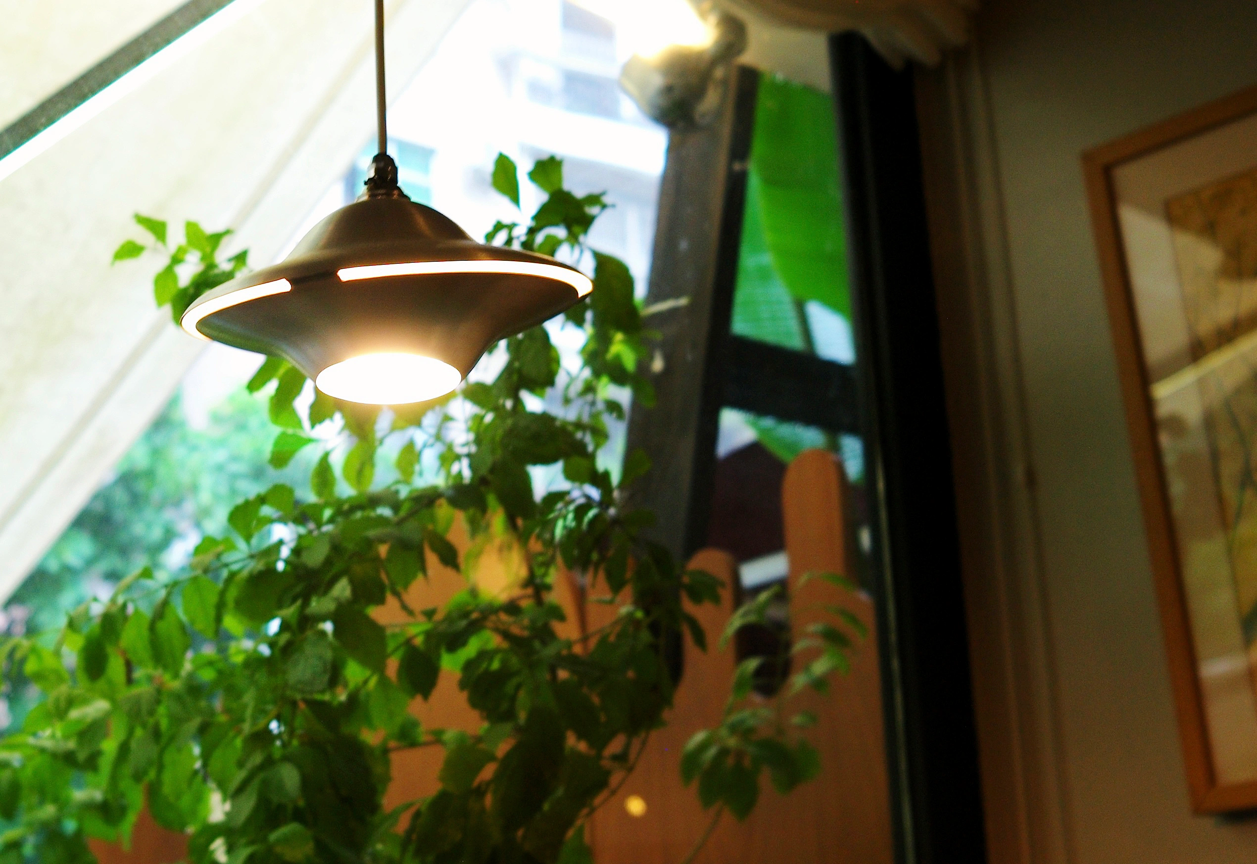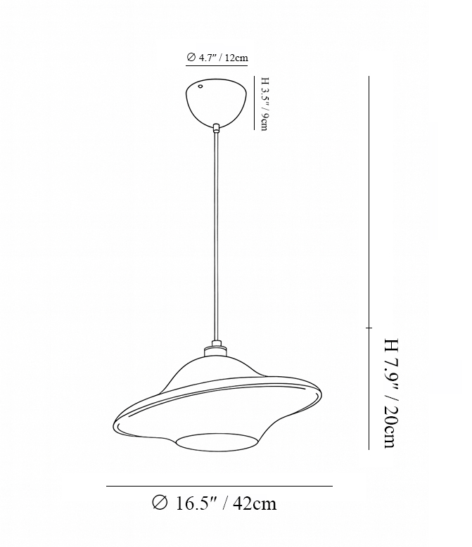The gently curved profile evokes the motion of a passing wave or the quiet glide of a UFO, casting warm, downward illumination ideal for dining areas, kitchen islands, and living spaces. Paired with a clean suspension cable and subtle detailing, the design feels both nostalgic and contemporary.