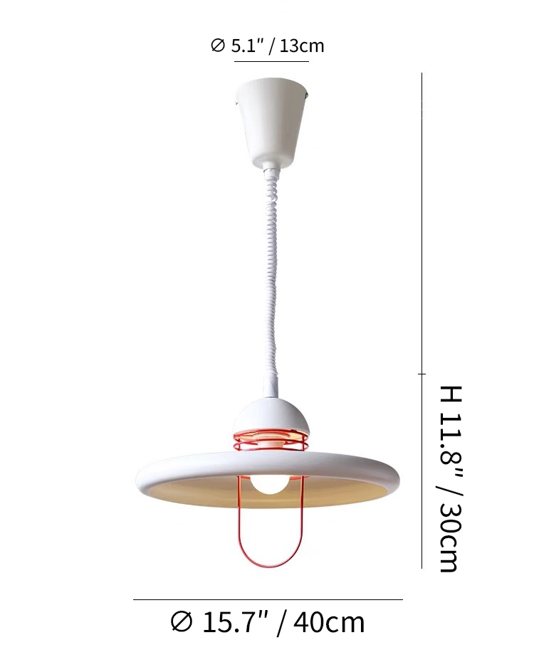 A playful accent meets clean modern form. The Crimson Comet Pendant features a smooth disc shade paired with a vivid red loop structure that adds a subtle graphic contrast. Suspended from a retractable cord, the height can be easily adjusted to suit dining tables, kitchen islands, or reading corners.