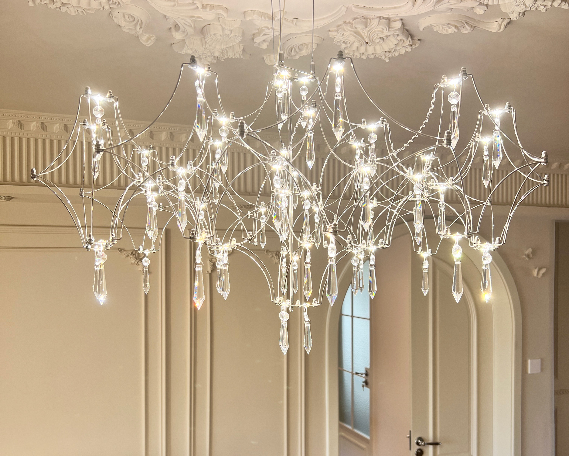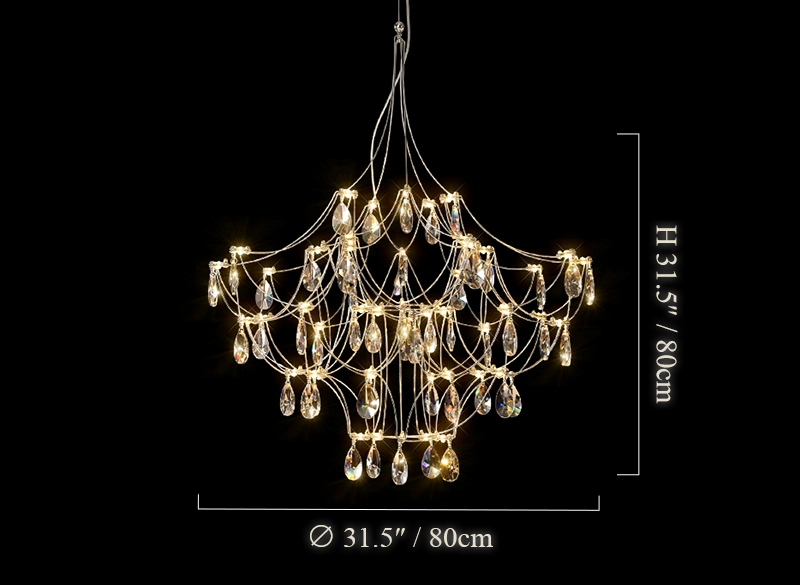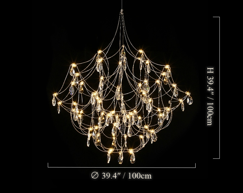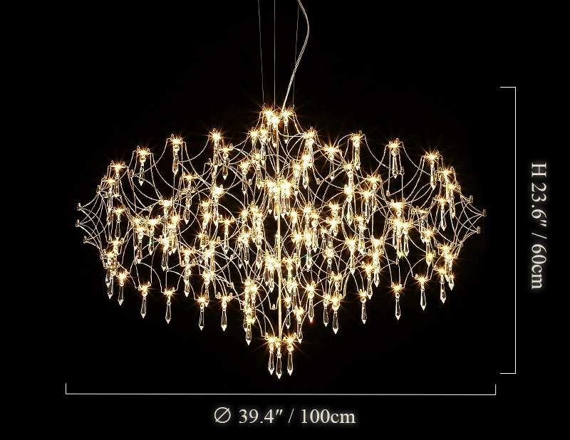 Suspended like a constellation of glimmering lights, the Crystal Firefly Chandelier brings a sense of ethereal beauty to any space. Each strand of stainless steel and fine metal wire is delicately adorned with crystal glass droplets that shimmer like fireflies in midair. When illuminated, it casts a soft, enchanting glow that feels both luxurious and weightless.