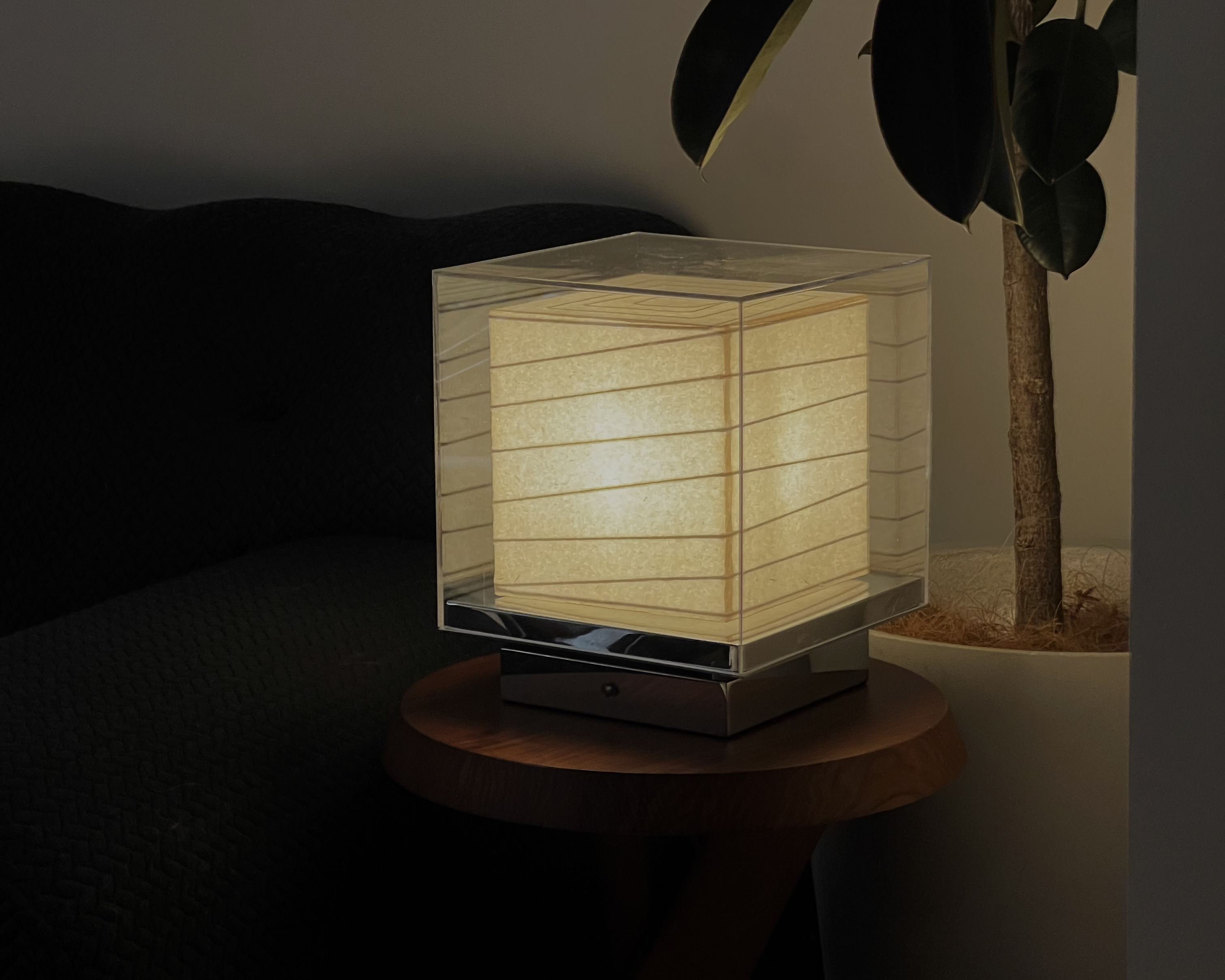 Featuring a refined “box-in-a-box” construction, this table lamp offers a quiet sense of dimensionality. The layered composition—the glass outer frame, inner xuan paper shade, and the space in between—reveals itself subtly from the side, highlighting depth, texture, and balance. Minimal yet distinctive, it blends effortlessly into any interior, casting a soft, tranquil glow that elevates the atmosphere.