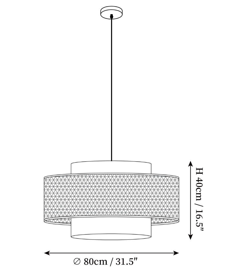59″ Adjustable hanging height cable. Can be extended upon request.