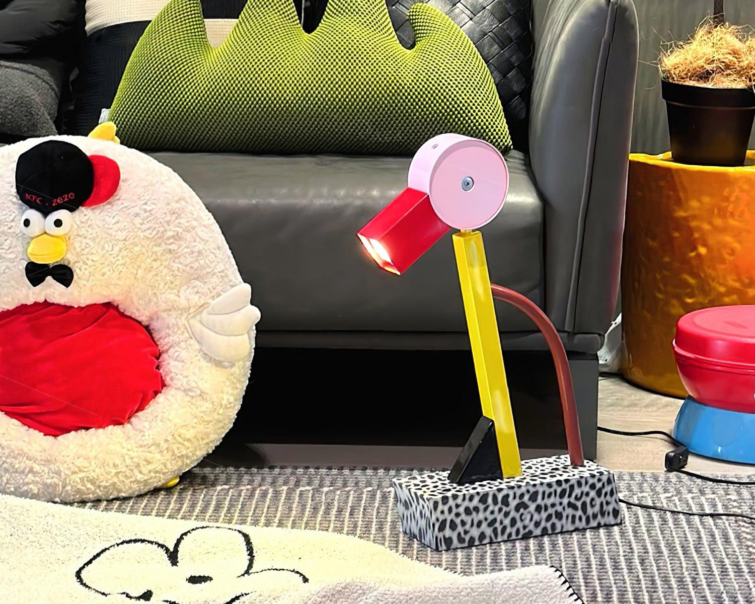 Combining playful charm with practical design, this eye-catching desk lamp features a bold metal structure highlighted by a bright yellow arch and a circular pink shade, evoking the whimsical form of a duck. A red accent resembling a duck’s beak adds a fun, quirky detail, while the textured base lends a modern edge. Equipped with an energy-efficient LED light source, it’s ideal for reading, working, or simply brightening up your space with a cheerful splash of color.