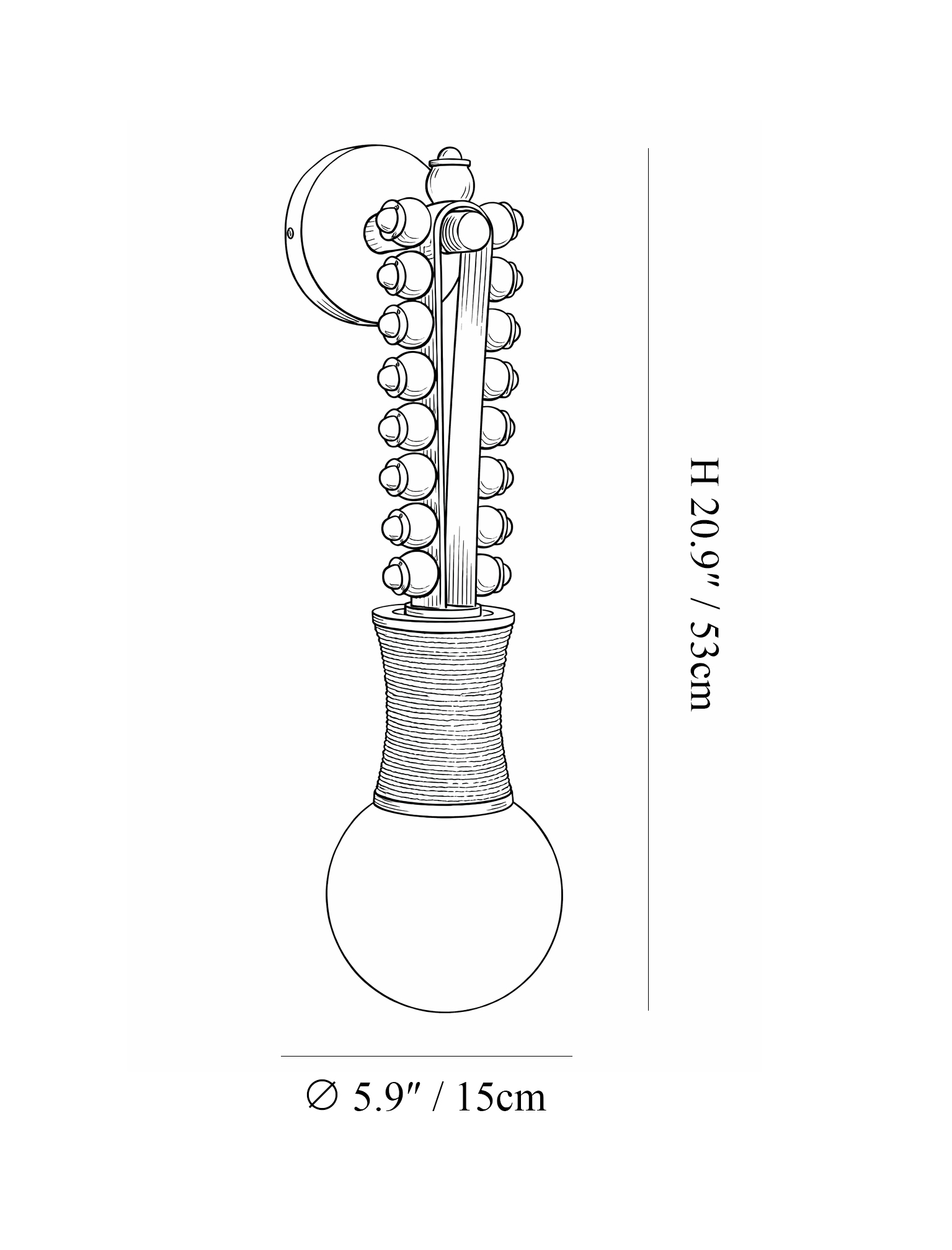 Model B Jade Beads: L 5.9″ x W 7.1cm x H 20.9″ / L 15cm x W 18cm x H 53cm