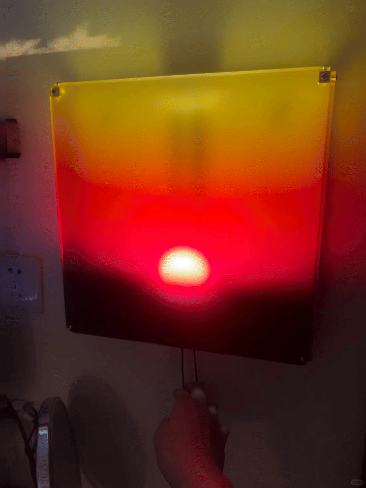 Capture the fleeting beauty of sunset and hold it in your hands. With a gentle pull, watch the sun rise or set against a vivid gradient sky, turning a brief moment of romance into a timeless scene. Crafted from smooth acrylic and glowing with soft LED light, it brings warmth, wonder, and a touch of magic to any space.