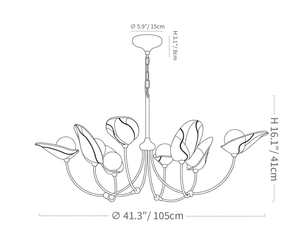 A quiet study of form and light, the Floris Chandelier unfolds like a cluster of petals suspended in mid-bloom. Each shade, shaped in soft curvature, cradles a diffused glow that feels both gentle and intentional.