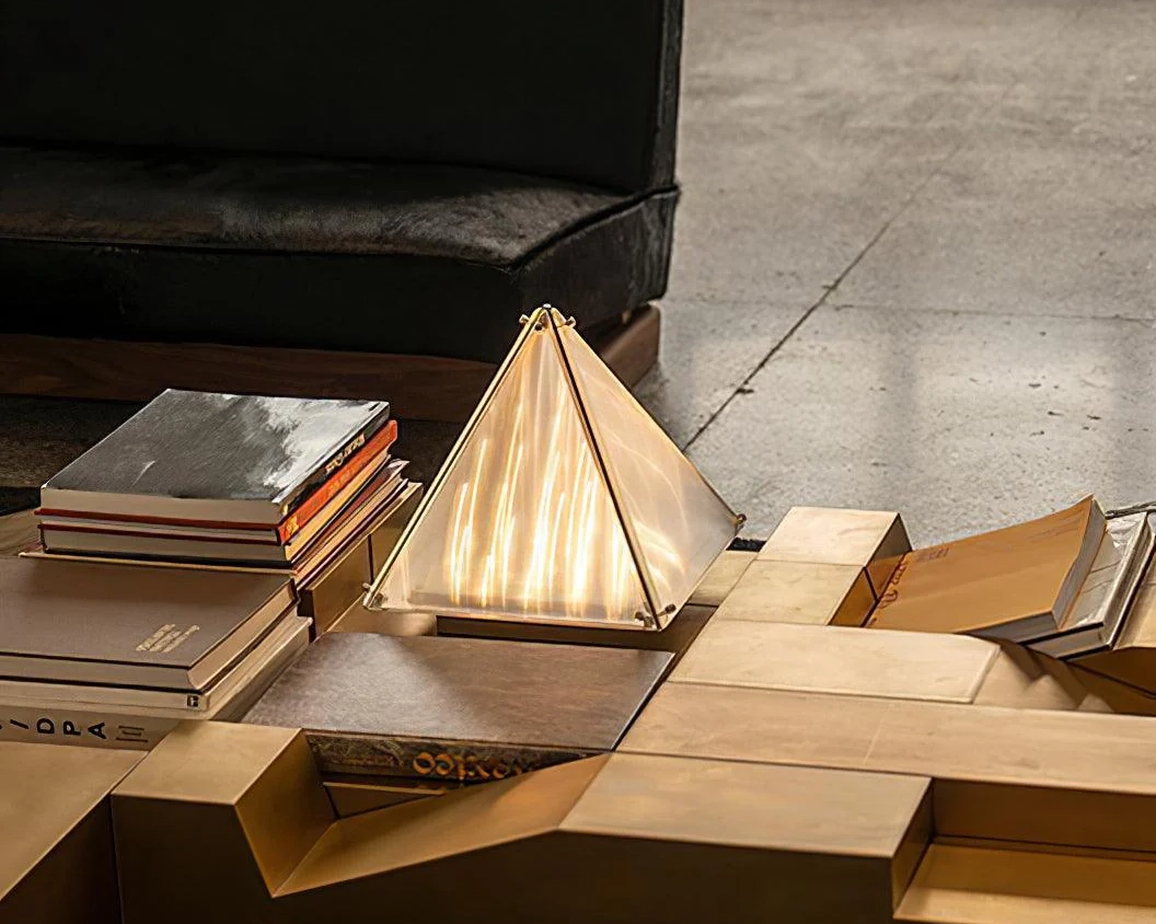 The 'Fragment' Table Lamp features patterned glass designed to refract and redirect light, producing a unique and atmospheric effect. Drawing inspiration from the archetypal forms of Western Gothic churches, it evokes the mystical ambiance created by stained glass windows. By translating architectural elements into lighting design, the 'Fragment' series captures the interplay of light, color, and shadow in a poetic and contemporary form.