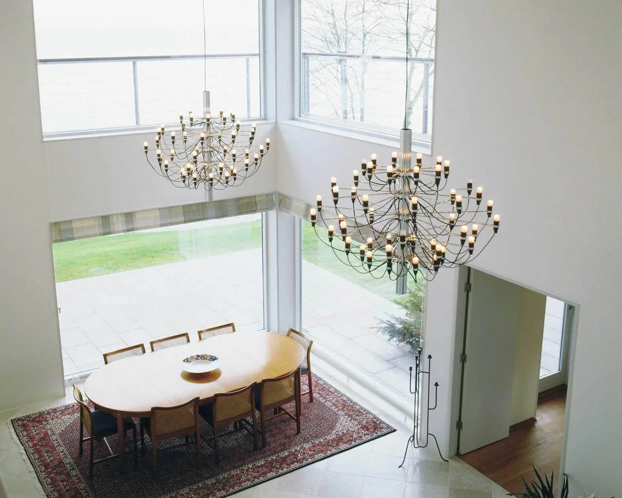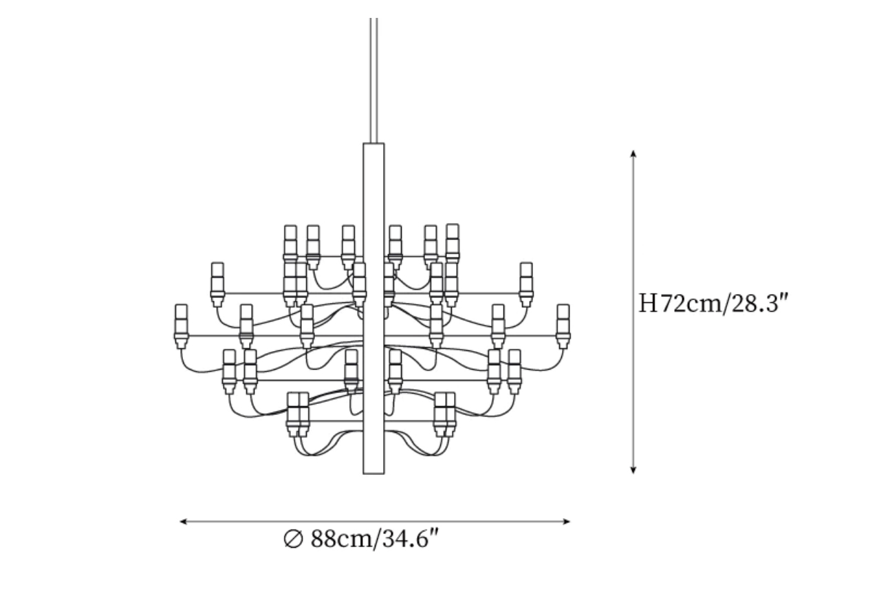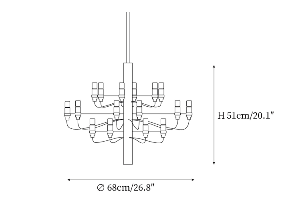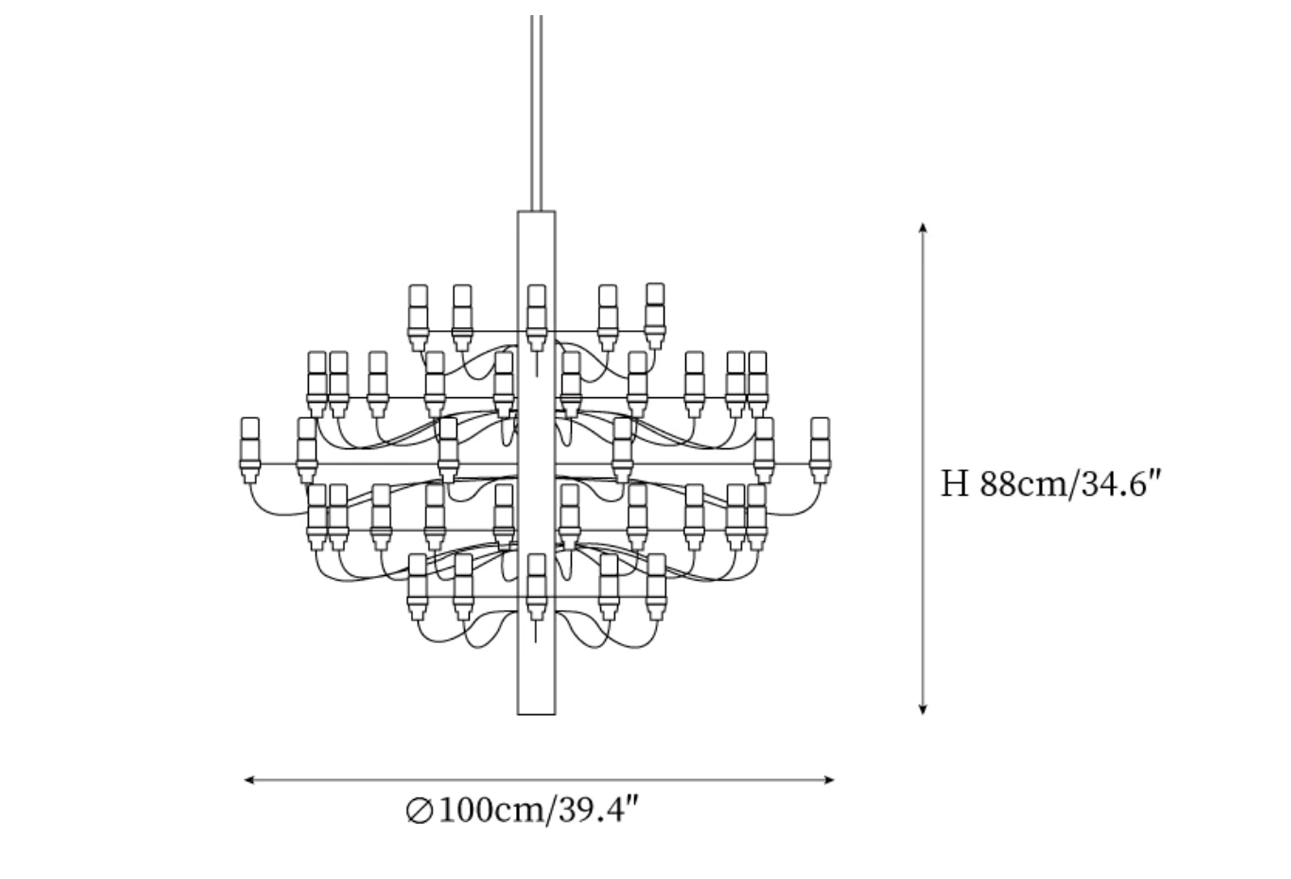 Originally introduced in the late 1950s, the Fruit Pendant Lamp reimagines the classic mid-century chandelier in a distinctly modern form. Every detail reflects thoughtful engineering, from the mirror-polished central steel frame to the individually mounted horizontal arms and the elegant wiring that gently traces the length of the stem.