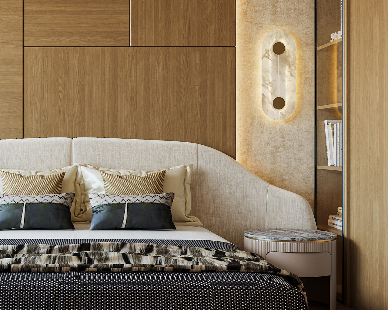 The Halo Axis Alabaster Wall Light is defined by its softly glowing circular form, intersected by a clean central line that brings balance and structure. Crafted from natural alabaster, each piece reveals unique veining when illuminated. Available in round and oblong silhouettes, it offers a calm yet sculptural presence for refined interiors.