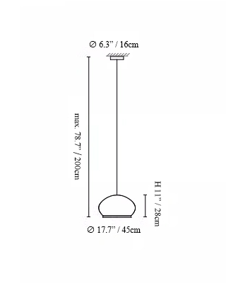 NOTE: Maximum suspension cable length: 200 cm (adjustable).