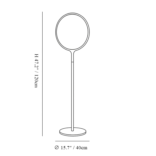 2-Head Size: ∅ 15.7″ x H 47.2″ / Dia 40cm x H 120cm