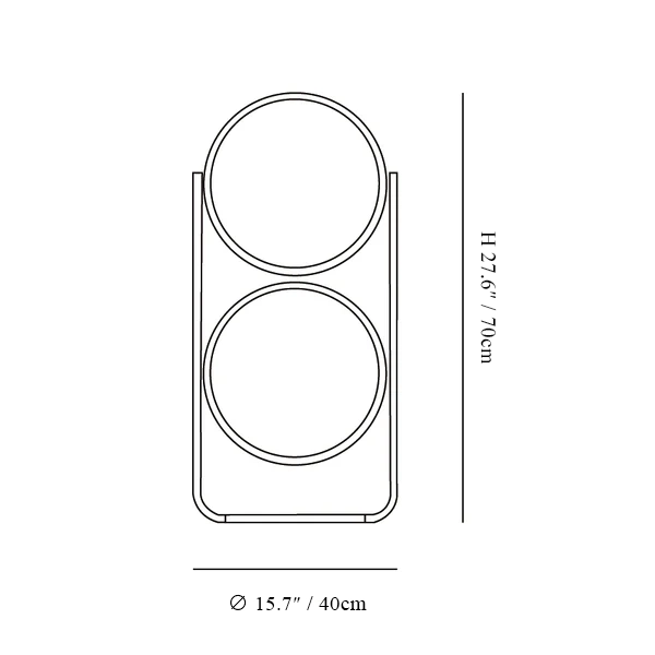 2-Head Size: ∅ 15.7″ x H 27.6″ / Dia 40cm x H 70cm