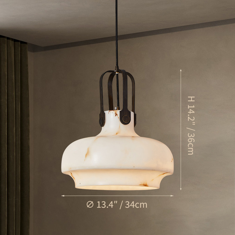 The alabaster-style shade softens the glow, allowing it to spread evenly and comfortably through the space. Its natural veining adds a subtle sense of variation, giving each piece a quiet individuality.