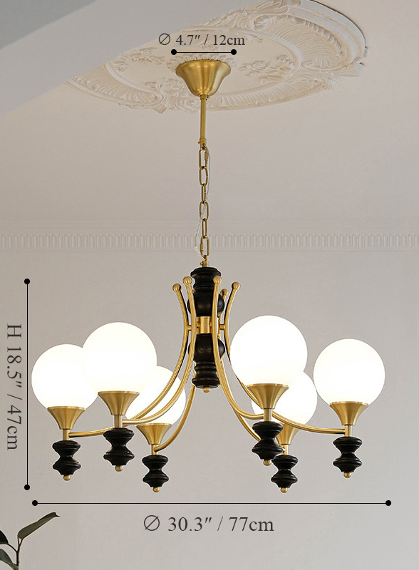 Crafted in solid brass and accented with hand-turned ash wood, this chandelier draws from the enduring language of classical lighting. Gracefully curved arms extend like branches, supporting softly diffused light that feels balanced and composed. Designed to age with dignity, it brings a quiet sense of heritage to dining and living spaces.