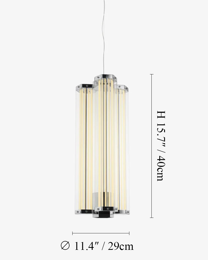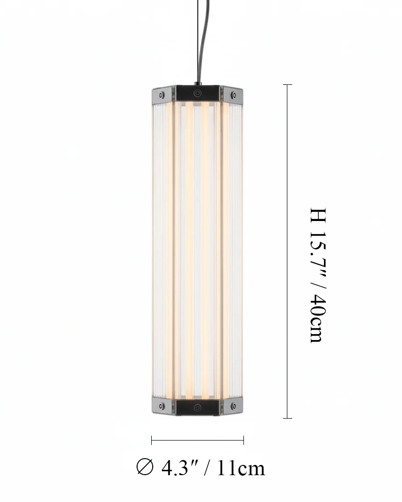 The Hexagonal Glass Pendant Lamp features a striking vertical silhouette defined by its multi-tiered, hexagonal glass structure. Within, slender light elements cast a warm, diffused glow that radiates through the transparent panels, creating an elegant interplay of light and geometry. Suspended gracefully by a fine cable, it embodies modern minimalism and architectural refinement—perfect for illuminating dining areas, living spaces, or entryways with sculptural sophistication.