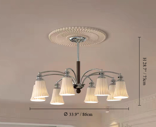 Defined by clean structure and balanced materials, the Linden Ceramic Chandelier pairs a solid metal frame with a white ash wood stem, bringing subtle warmth to its refined silhouette. The ceramic shades offer high light transmission while softly diffusing illumination, creating an even, comfortable glow. Durable, timeless, and quietly elegant, it is designed to complement interiors with a sense of calm and understated character.