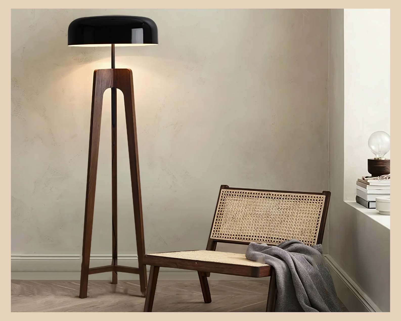 The Linea Floor Lamp is where artistry meets illumination. It features rich wooden supports paired with a sleek black lampshade, creating a stunning visual contrast. The warm, natural grain of the wood beautifully offsets the lamp's modern, dark tones. This exquisite piece adds a touch of sophistication and style to any room, making every corner of your home feel luxurious.