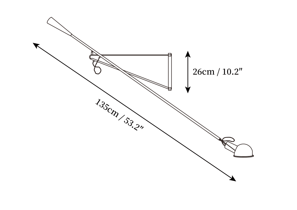 The Long Arm Wall Lamp combines industrial simplicity with practical versatility. Featuring a sleek metal frame and a compact, adjustable aluminum shade, it offers flexible directional lighting with ease. Its elongated form makes a bold statement, while its clean lines ensure it blends seamlessly into modern interiors. Ideal for commercial environments or spacious residential settings, this wall lamp delivers both function and style.