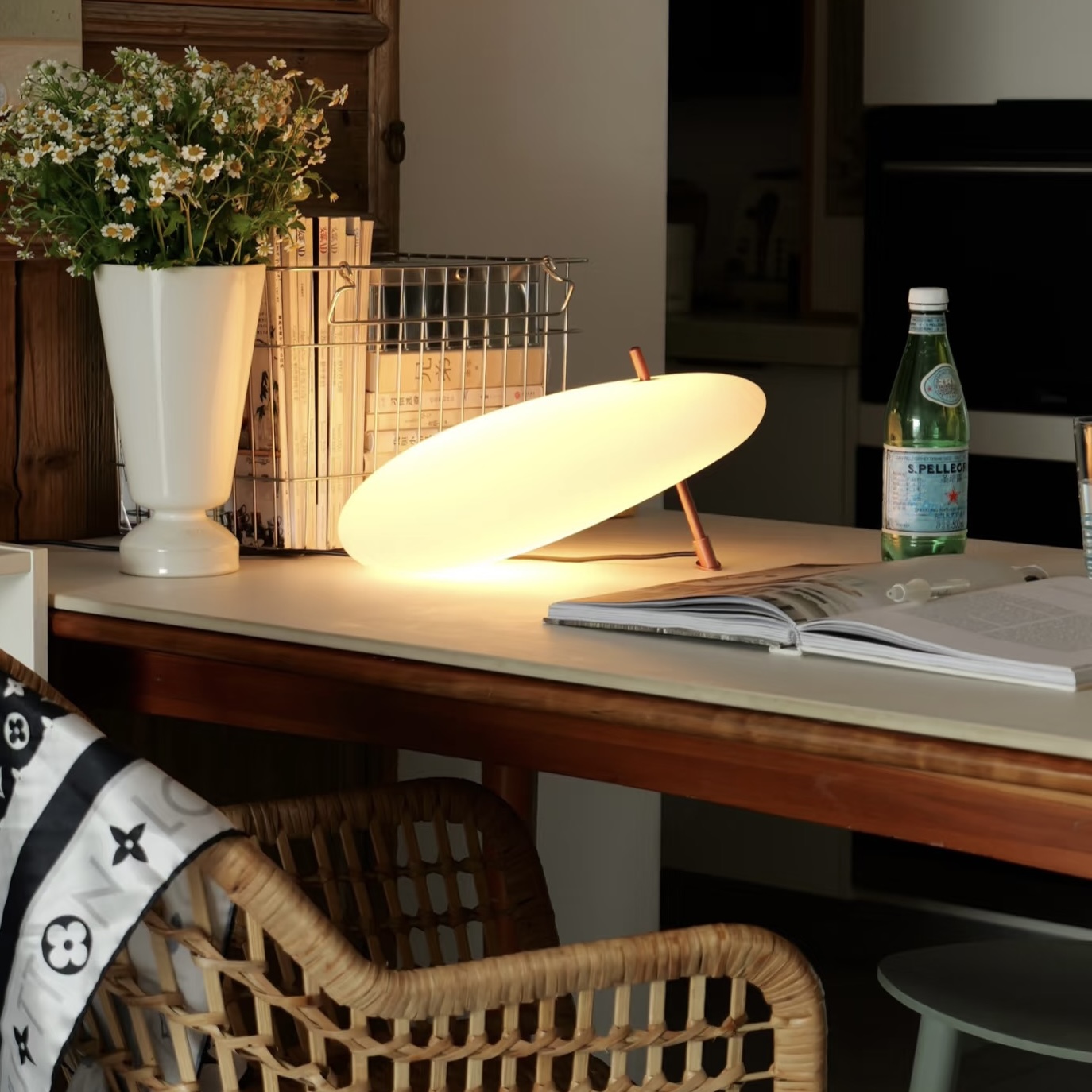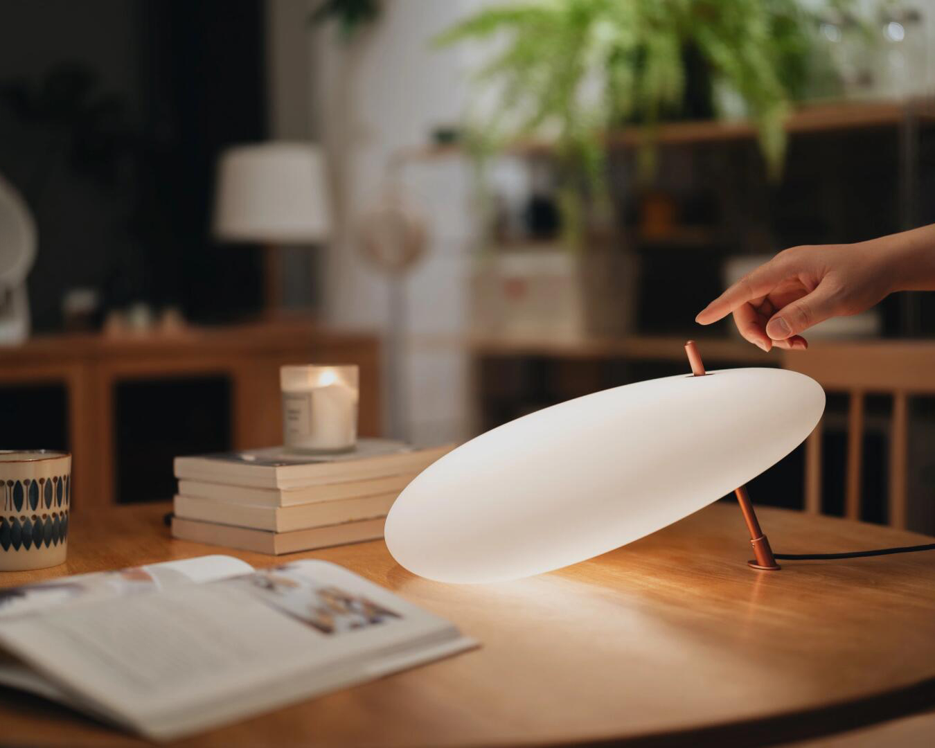 Once powered, a gentle tap on the metal rod brings the light to life, softly blooming like ripples on water. The warm glow spreads like silk, or ink drifting through a clear stream—subtle, soothing, and poetic.