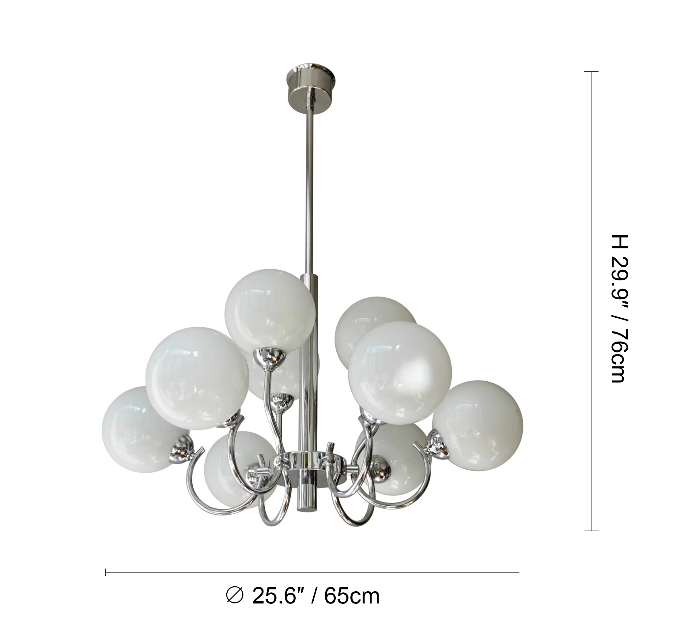 Introducing the Luna Sphere Chandelier – a stunning fusion of modern sophistication and timeless elegance. With its polished chrome frame and graceful white spherical glass shades, this chandelier exudes a luminous glow that transforms any space. Perfect for adding a touch of refined style to living rooms, dining areas, or entryways, the Luna Sphere Chandelier offers a contemporary flair while maintaining a soft, inviting ambiance. Elevate your home decor with this statement piece that combines functionality with striking design.