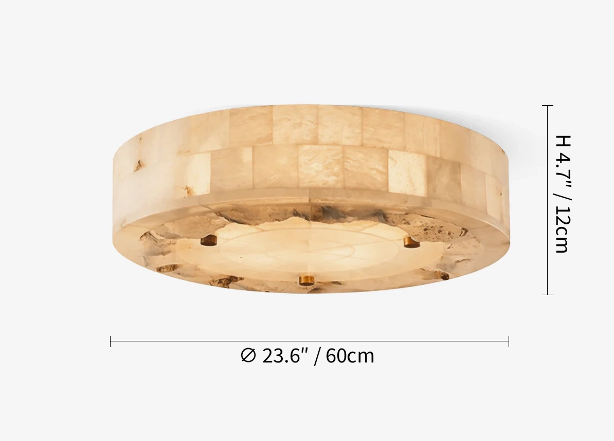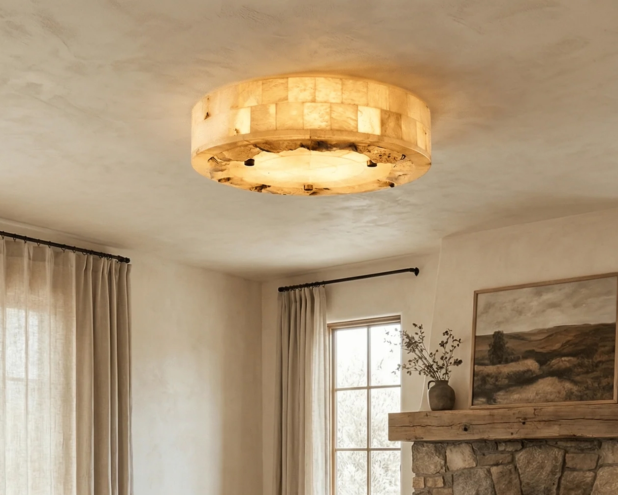 The Luriel Alabaster Ceiling Light celebrates natural materials through a clean, minimalist form. Crafted from premium alabaster, its soft texture and warm tones bring understated elegance to any interior. Carefully arranged stone tiles diffuse light into a gentle glow, creating a calm and inviting atmosphere for living rooms, hallways, or entryways.