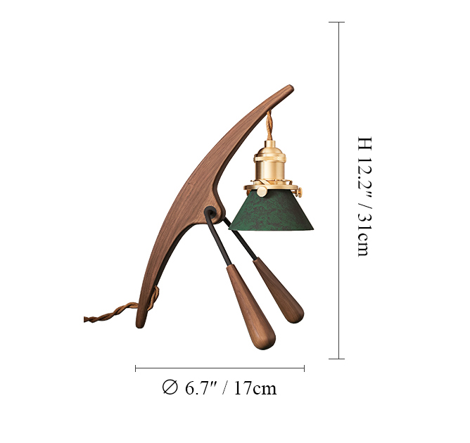 Its sculptural silhouette—reminiscent of a poised mantis—combines natural warmth with industrial elegance.