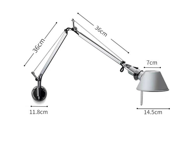 Crafted entirely from metal, this swing arm lamp features a fully adjustable frame that allows for seamless height and angle customization. Inspired by the iconic Tolomeo design, it’s beloved for its clean lines and timeless appeal. The lamp head rotates 360 degrees, and brightness can be easily adjusted to suit your needs.