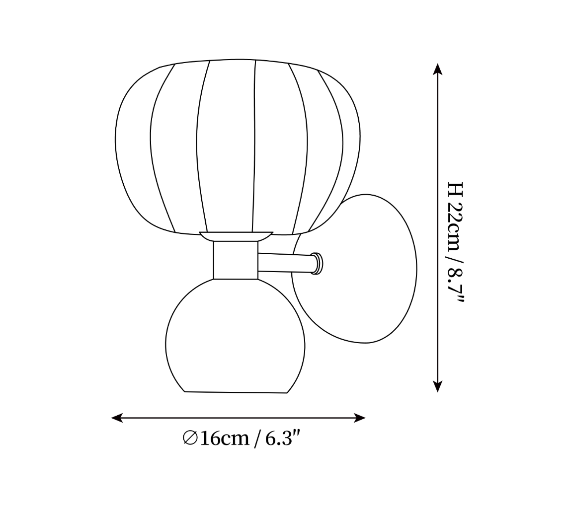 Size: Dia 16cm x H 22cm / ∅ 6.3″ x H 8.7″