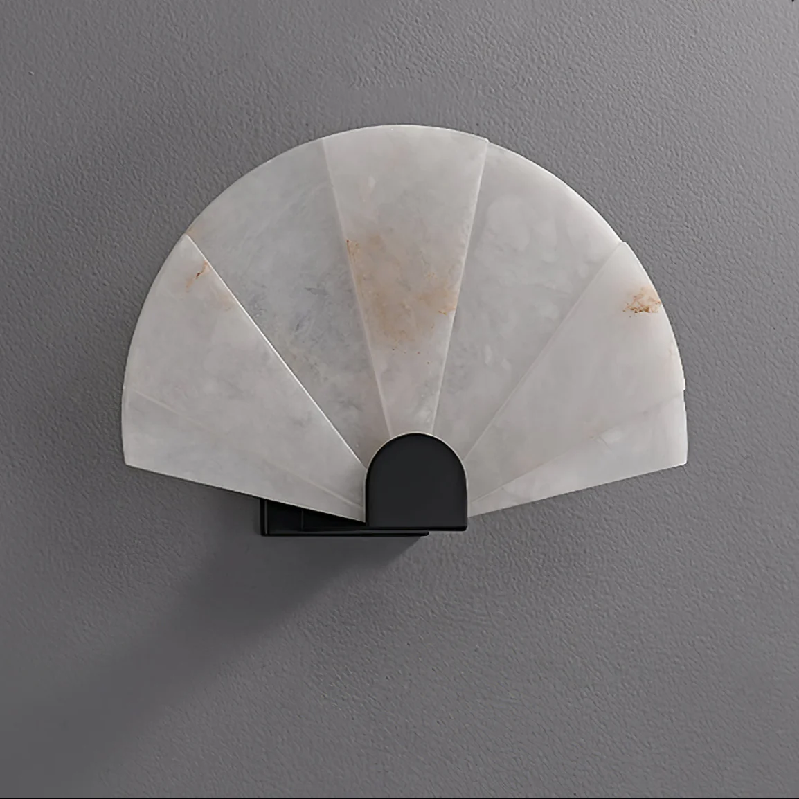 An ode to nature’s elegance and artisanal finesse, the Nevora Wall Lamp is meticulously carved from genuine alabaster, each piece showcasing one-of-a-kind veining and subtle translucency. Its graceful, fan-shaped form casts a warm, diffused glow, adding a soft sense of serenity to any space. Anchored by a sleek black base, Nevora blends classic beauty with modern simplicity, ideal for living rooms, bedrooms, or sophisticated corridors.