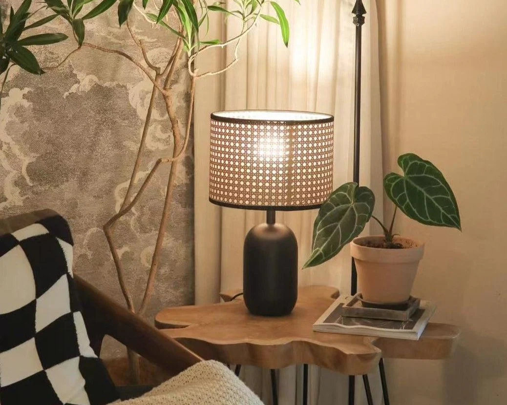 This elegantly crafted table lamp features a bamboo lampshade with clean, minimalist lines and a soothing color palette. The subtle contrast of the black trim adds a modern edge, creating a refined interplay between natural texture and contemporary design. Perfect for adding a touch of calm sophistication to any space.