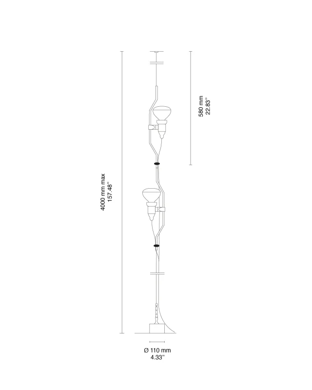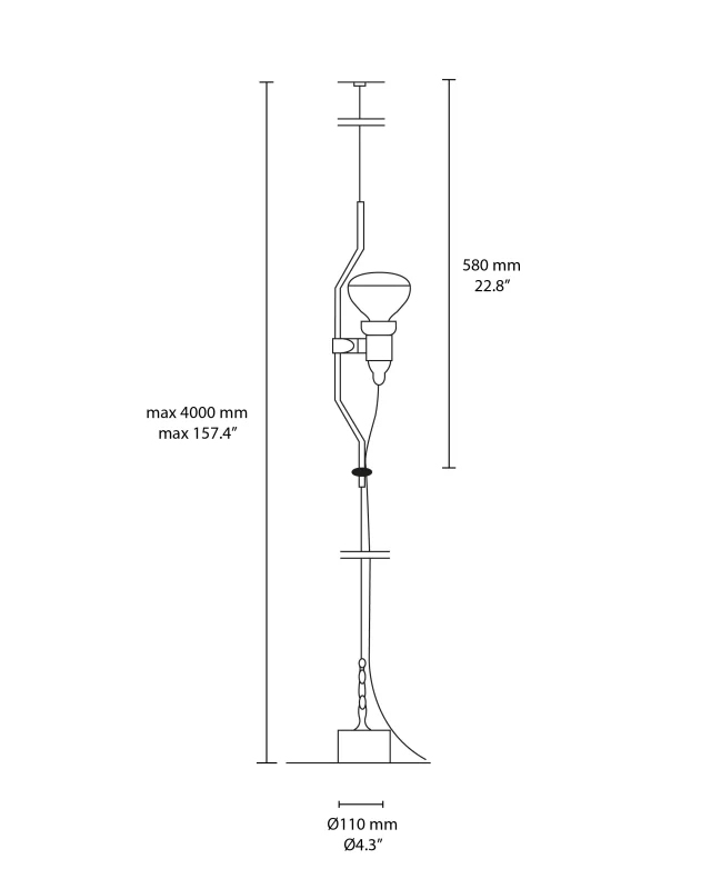 Note: The lamp length is adjustable, up to a maximum of 400cm / 157.5″.