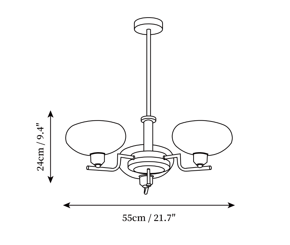 3 heads ∅ 21.7″ x H 9.4″ / Dia 55cm x H 24cm