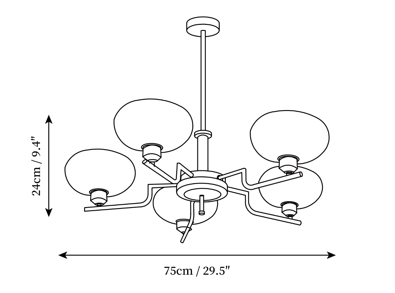 5 heads ∅ 29.5″ x H 9.4″ / Dia 75cm x H 24cm