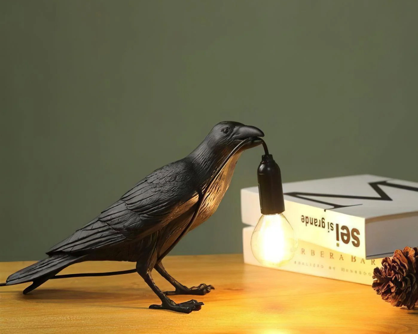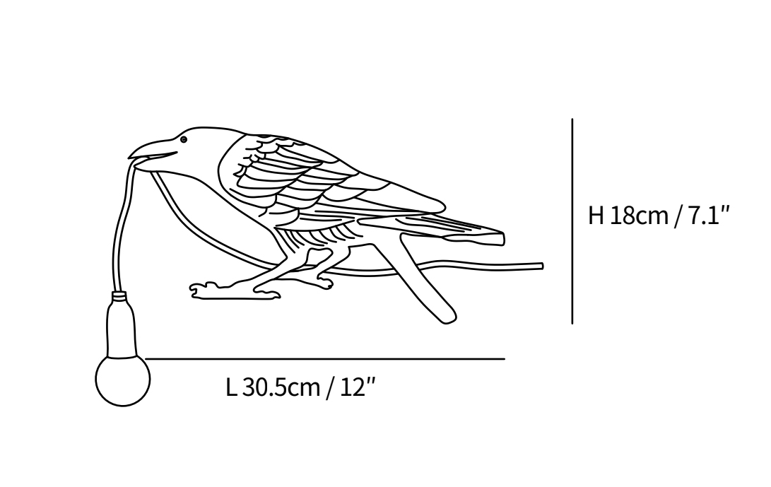 Add a distinctive touch to your home décor with the Raven Table Lamp. Crafted from resin, this striking piece showcases a sculpted raven holding an Edison bulb gracefully in its beak. With its modern finish and bold design, it serves as both a functional light and a captivating conversation starter.