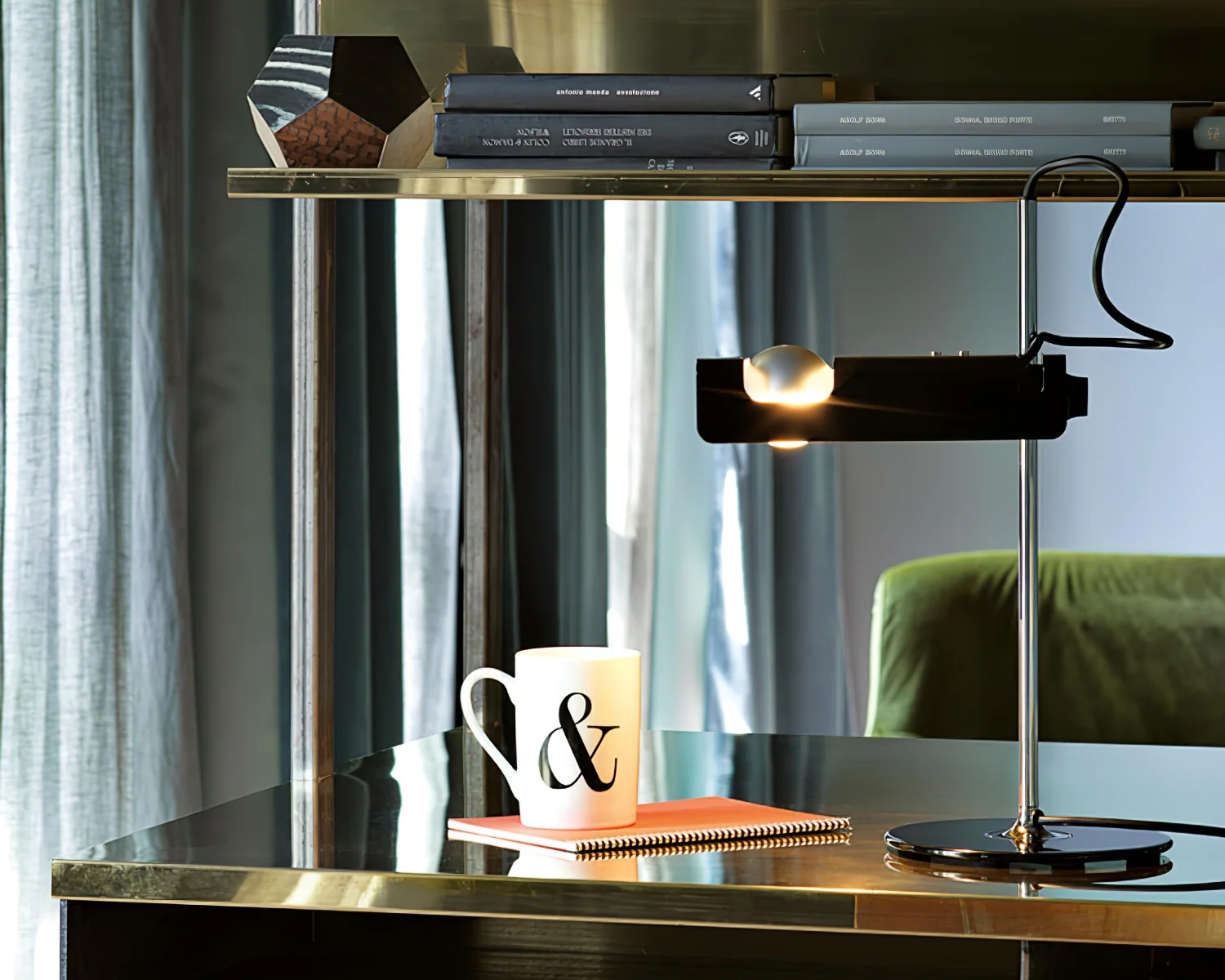 Thoughtfully crafted with a stove-enameled sheet metal reflector, the Spider Table Lamp delivers precise, directional lighting. Its horizontal spotlight bulb and adjustable tilt function allow for flexible illumination exactly where it's needed. Sleek and highly functional, this lamp adds a touch of modern sophistication to any workspace or living area.
