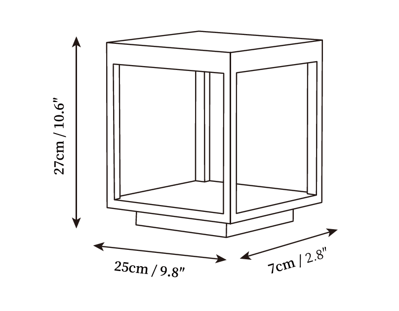 L 9.8″ x W 9.8″ x H 10.6″ / L 25cm x W 25cm x H 27cm