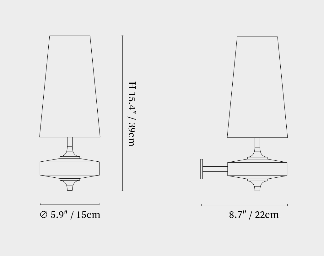 ∅ 5.9″ x H 15.4″ / Dia 15cm x H 39cm