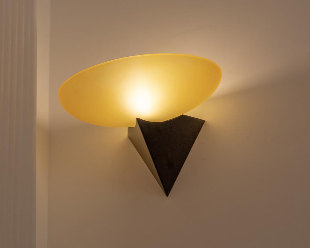 The Triumph Wall Sconce features a carbon steel base that has been meticulously polished and spray-painted. The shade is made from frosted acid-etched glass, which is thick, durable, and transparent. After the frosting process, the glass surface exhibits a soft, hazy beauty. The contrast between the lines, points, and planes is perfectly balanced, with intricate craftsmanship that provides a visually pleasing experience.