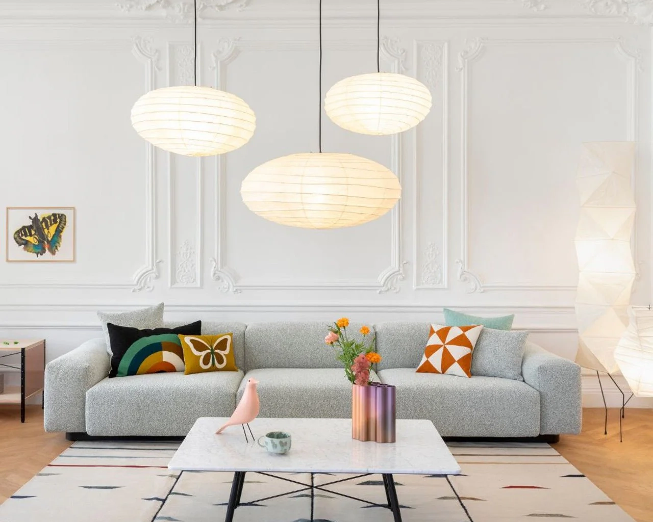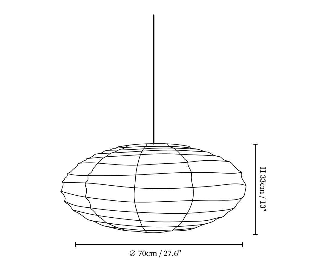 Experience the beauty of the Akari EN Pendant Light, an exquisite creation made from delicate washi paper. Drawing inspiration from traditional Japanese shoji doors, this designer piece casts a soft, golden glow that fills any room with a sense of calm and warmth. A perfect blend of tradition and elegance, it adds a timeless touch to your interior atmosphere.