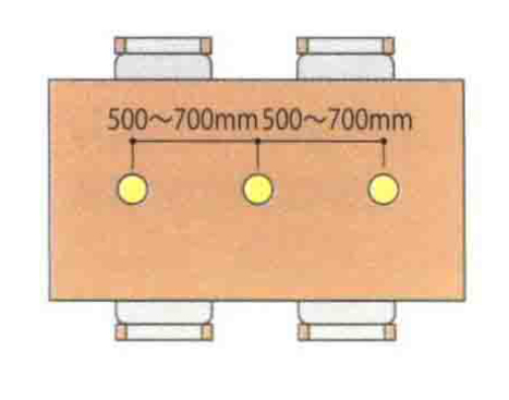 Example: L = 1500 mm ÷ 3 × 1/3 = ∅ 160 mm. - When using a track lighting system, even if the size or position of the dining table changes, the layout can be easily adjusted to match.