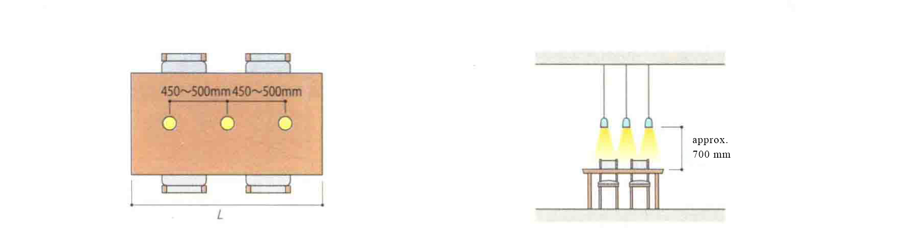 - The hanging height of pendant lamps must consider whether seated persons can see one another across the table.