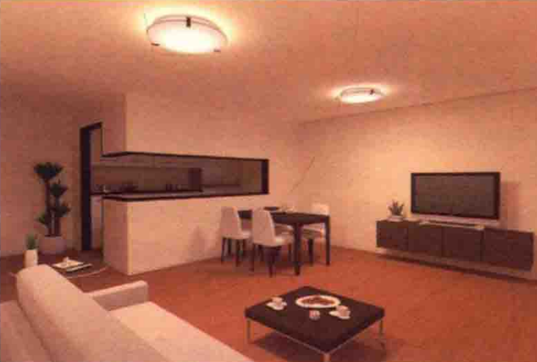 - Even without using pendant lamps, multiple downlights can be arranged over the dining area to secure sufficient brightness on the tabletop.