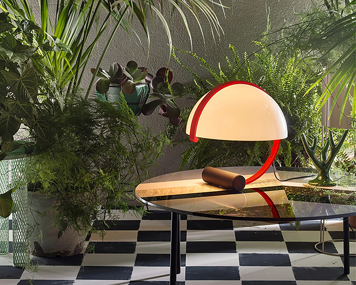 Its curved red arm and solid cylindrical base balance aesthetics with function, ensuring both stability and timeless appeal. A statement piece that turns everyday lighting into modern design.